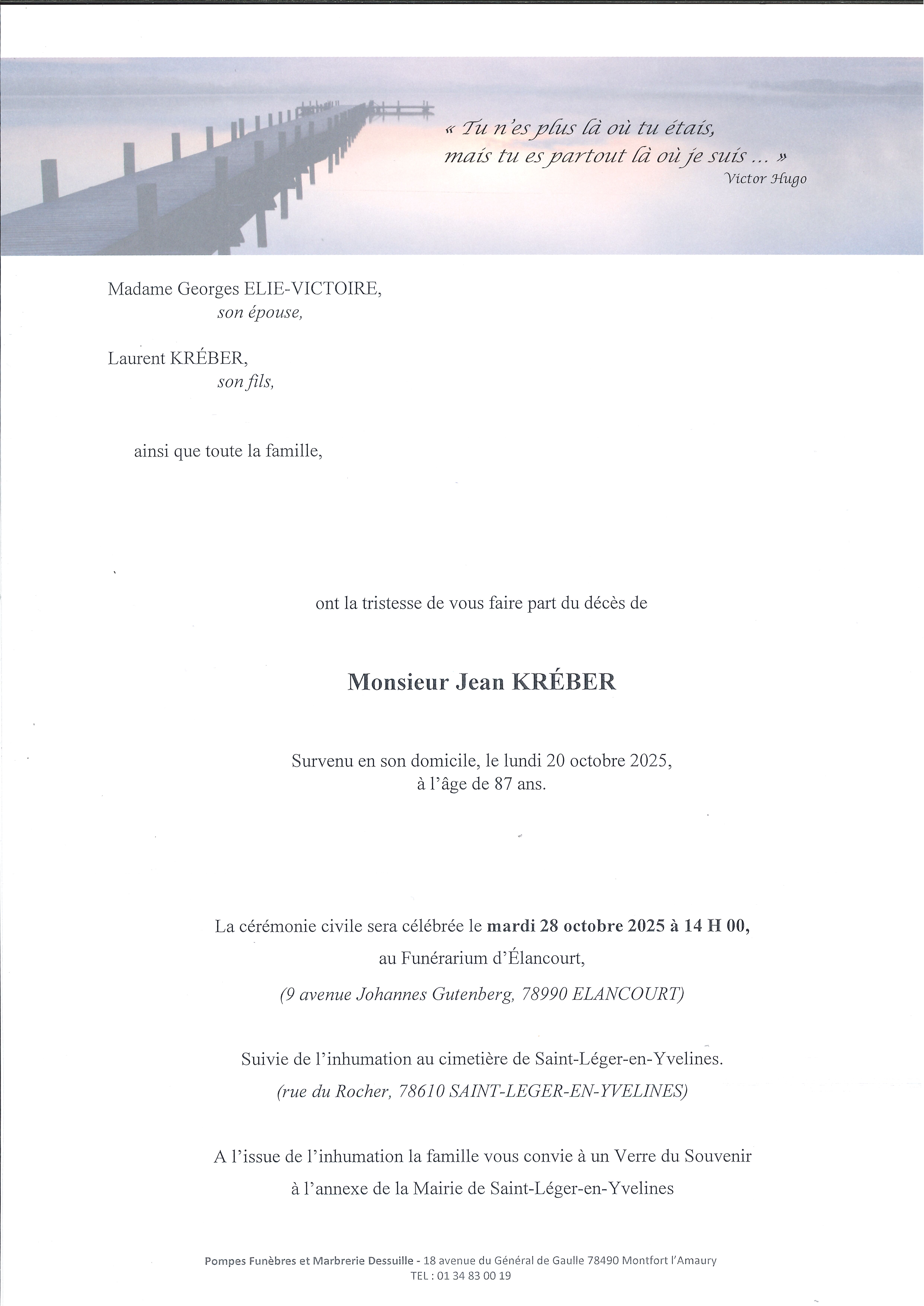 Suivie de l'inhumation au cimetière de Saint-Léger-en-Yvelines.