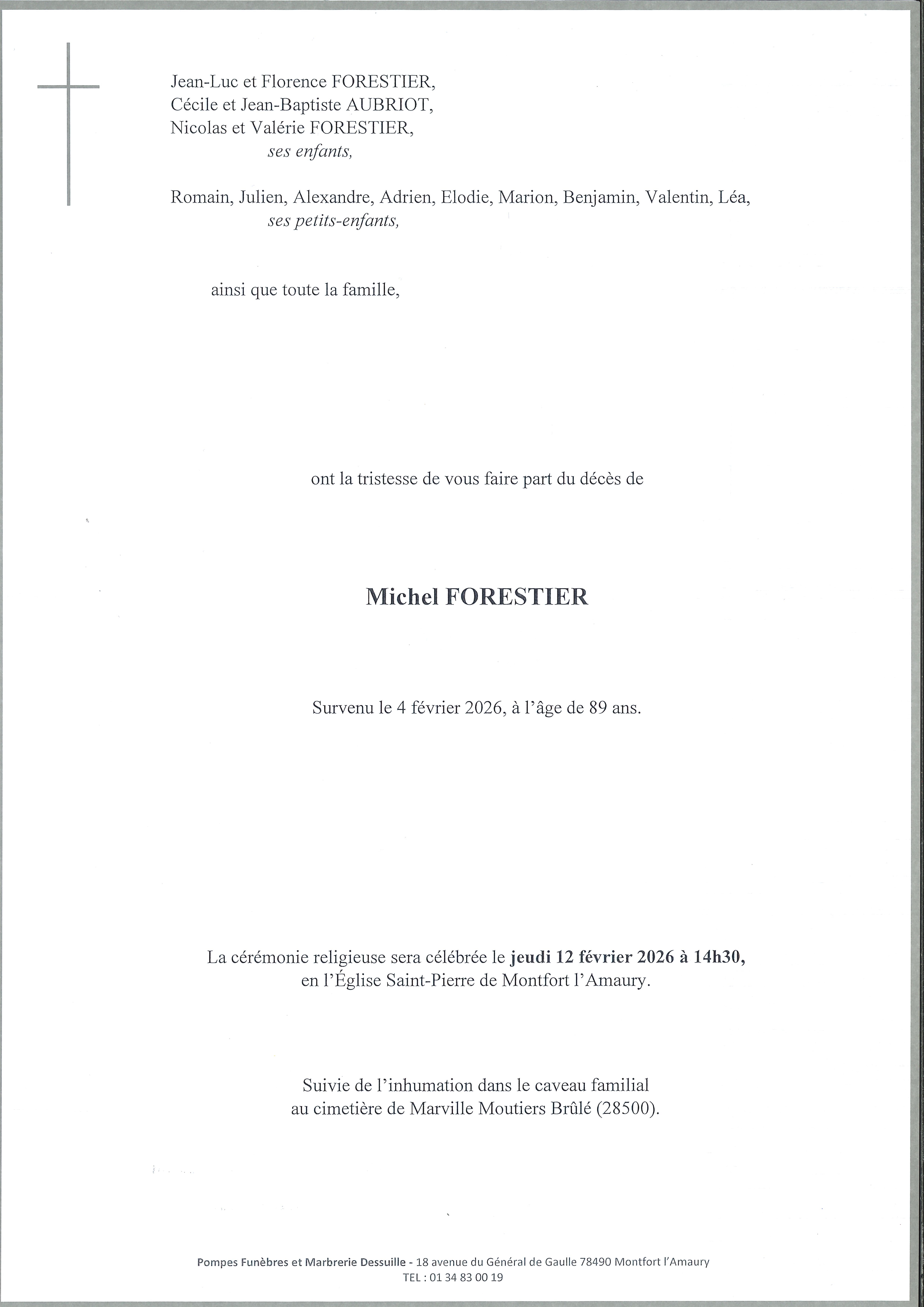 Avis de décès de Monsieur Michel FORESTIER